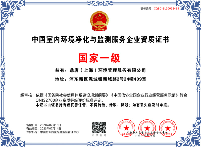 中国室内环境净化与检测服务企业资质证书